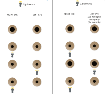 빛에대한 동공의 반응이 양안에서 동일하게 나타나야합니다.