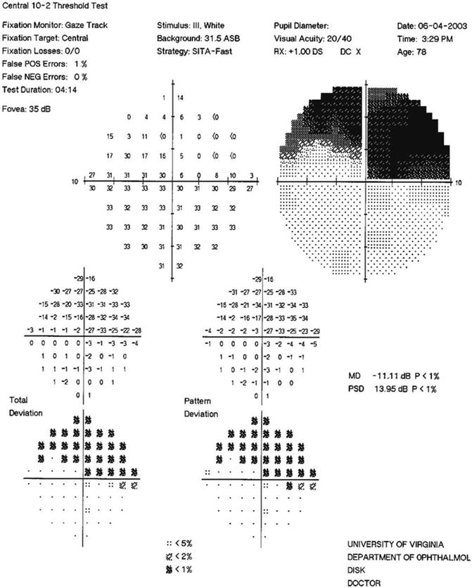 안압이 낮은 경우에는 국소적 결손(focal)이 더 잘 나타나는 경향을 보입니다.