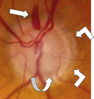 그리고 시신경유두의 이측에서 창백이 나타난다는 점 등에 의해서