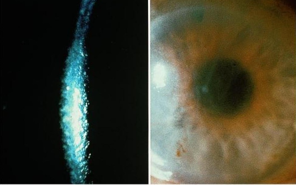 각막 상피부종이 발생하고, 각막상피에 물집이 생기면서