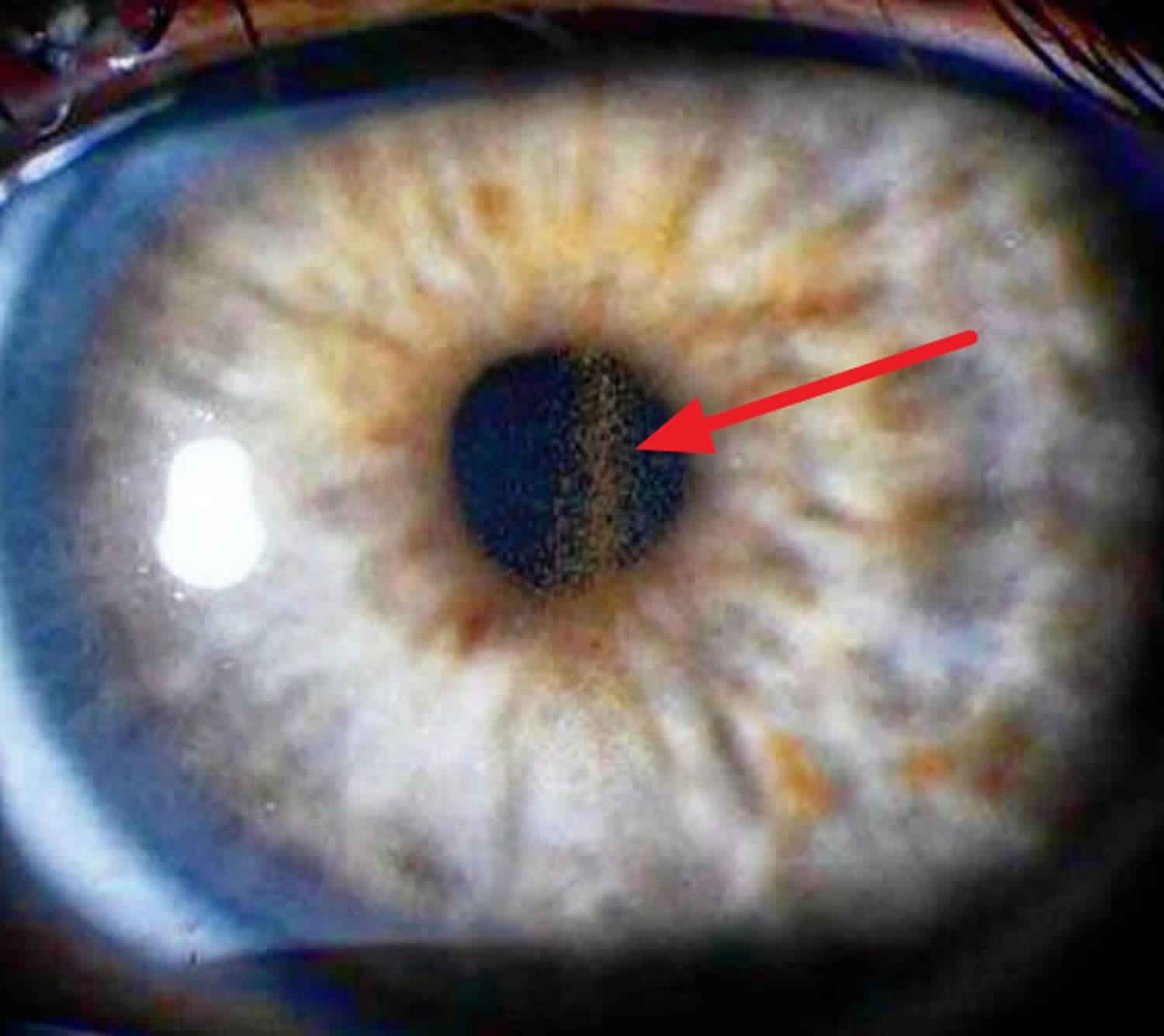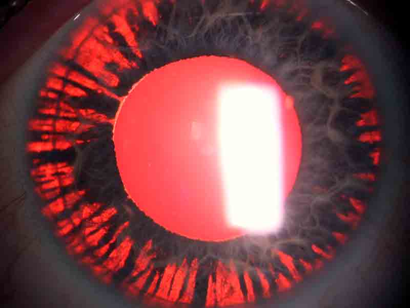 홍채와 섬모체소대와의 마찰에 의해 색소분산이 발생한다는 점의 근거가됩니다.