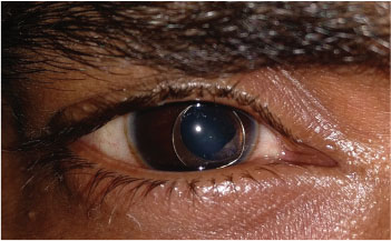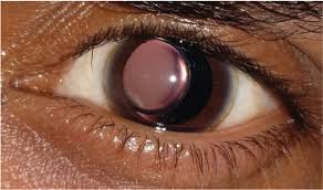 이 공모양 수정체가 탈구를 일으켜 동공과 맞닿는 경우,