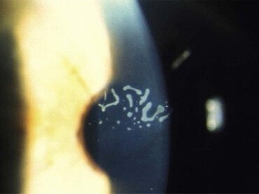 각막 상피의 상피바닥막의 이상으로 인해 미세한 외상에도 각막상피에 큰 손상이 가능하며,