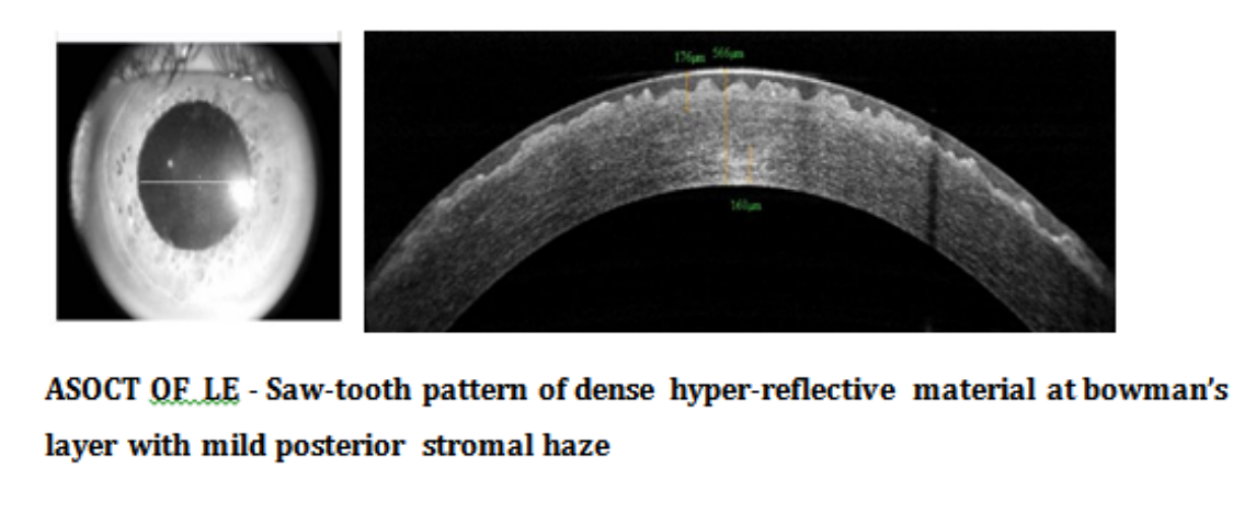 불규칙한 회백색 혼탁이 상피 아래에 존재하는데,