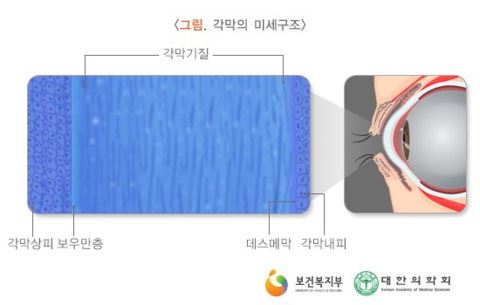 각막상피 - 보우만막 - 실질 - 데스메막 - 내피