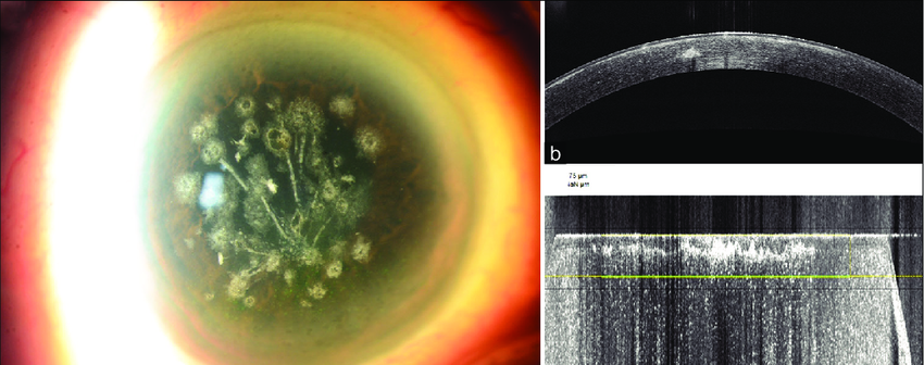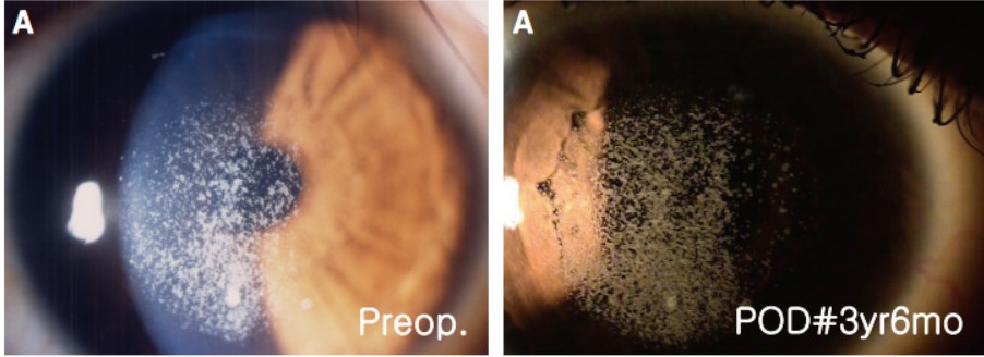 수술 초기에는 각막 혼탁이 호전이 되었다가 각막 외상이 가해진 불규칙한 수술 경계면을 따라