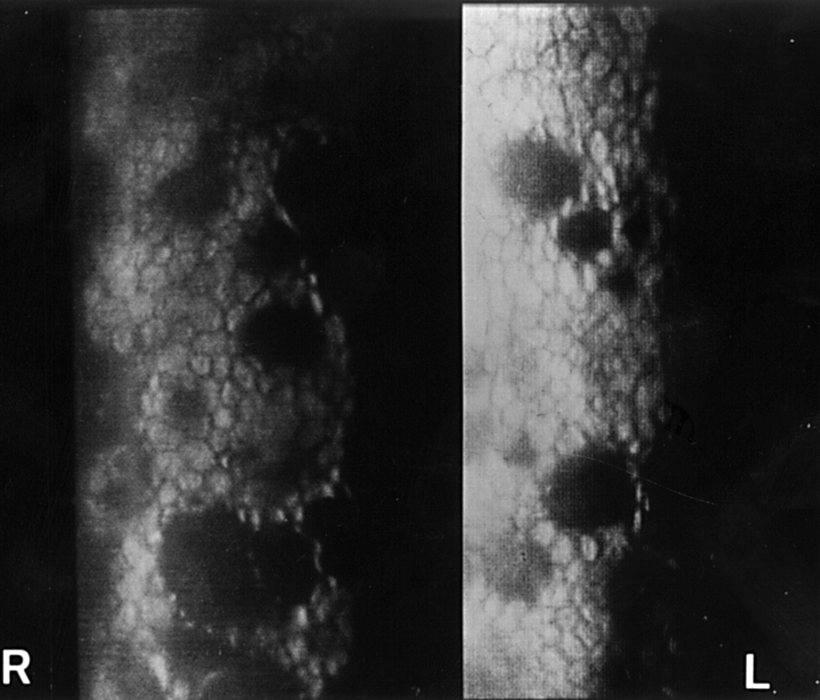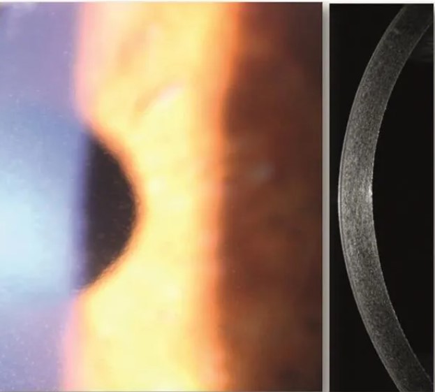 각막 두께를 측정해보면, 대개 정상 두께인 550 um 보다 훨씬 두꺼워진 700 um이상의 두께가 되며,