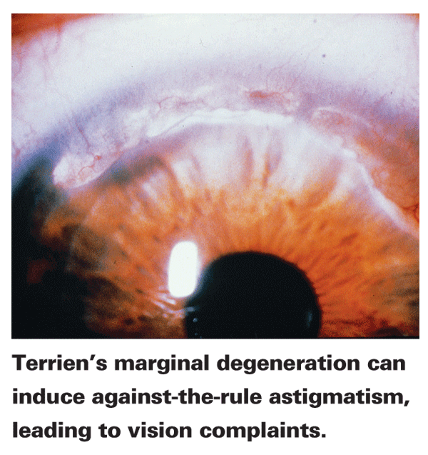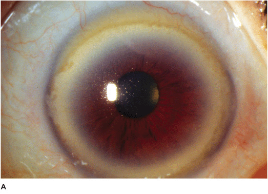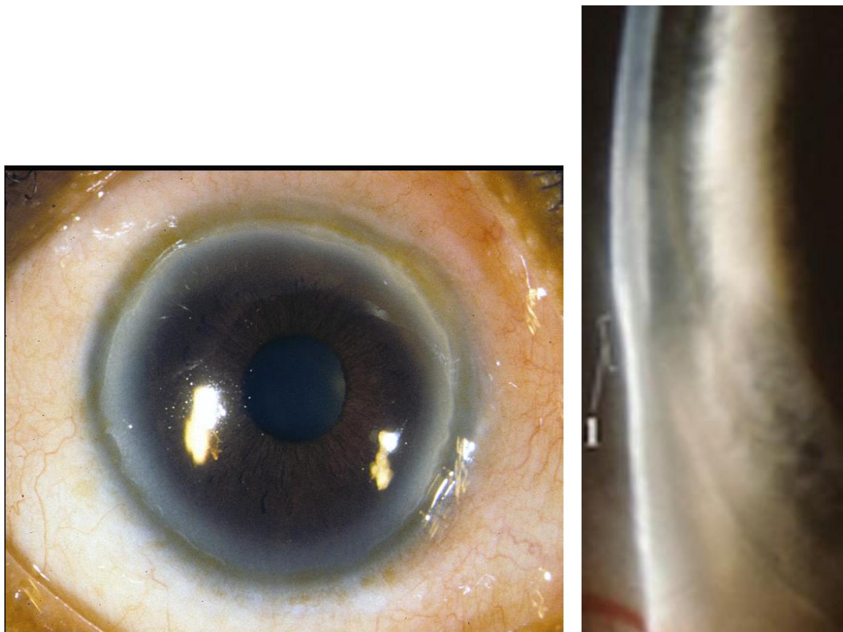 노인환, 각막 윤부혈관망 사이에 있는 무혈관의 각막이 얇아지는 변성입니다.