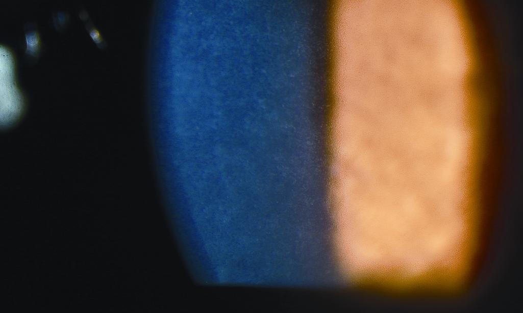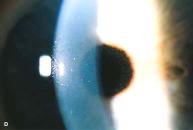 회갈색 혹은 흰색의 가루먼지 모양의 미세혼탁이 발견됩니다.