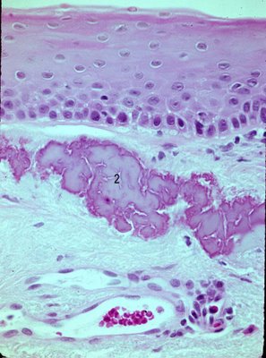상피하에 여러개의 공모양 변성이 관찰됩니다.