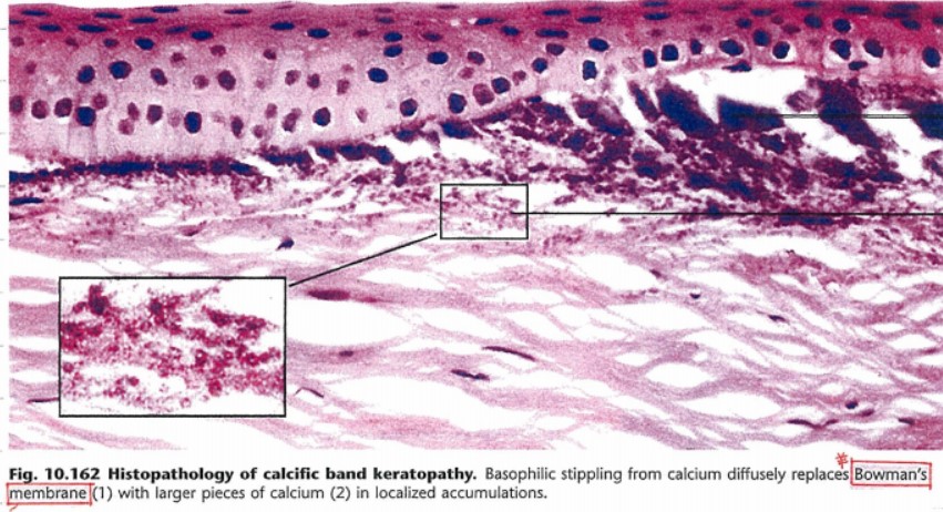 나중에는 침착된 부분 앞쪽의 각막 상피가 얇아지면서 위축되기때문에,