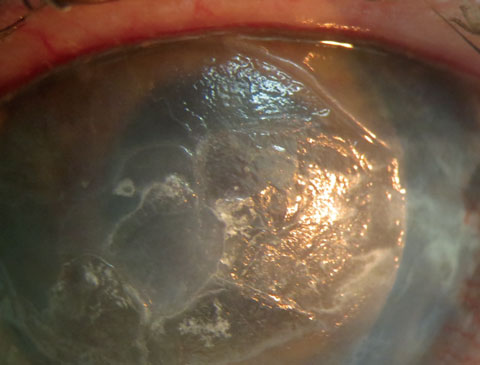 과립이 합쳐지면서 보우만막을 분해하게되고, 이는 앞쪽 각막 기질로 대치됩니다.