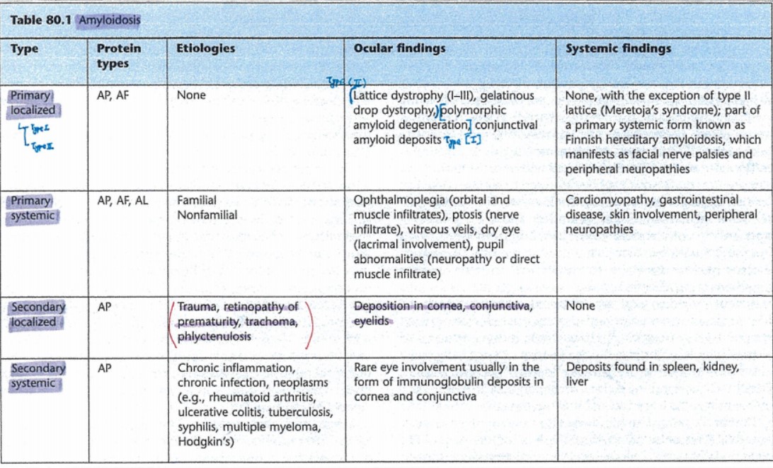 각막이나, 결막, 눈꺼풀 등에 아밀로이드 성분이 침착되는것을 의미합니다.