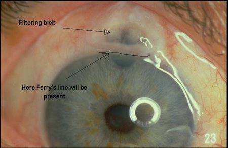 녹내장 수술이후 여과포화 관련된 철분 침착입니다
