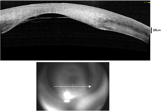 각막 후면의 함몰로 인해, 후면 곡률 증가, 즉 각막 후면이 앞으로 불룩하게 튀어나오는 질환입니다