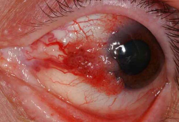 결막의 상피에서부터 발생하여 결막의 전층 및 하부 조직이 침범하게되면서,