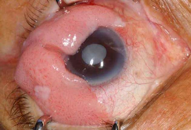 홍채, 전방각 홍채근육 등 안구의 안쪽까지 확장될수도 있습니다. (advanced stage)