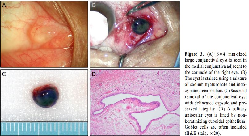 결막 낭종은 육안으로 낭의 경계를 명확히 구분하기가 어렵고,