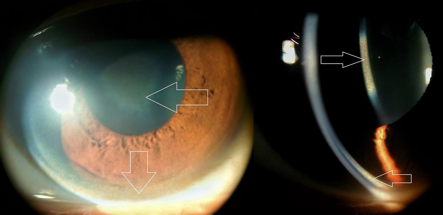 각막에도 그 물질이 침착되게 된느데, 그중 유명한것중 하나가 구리의 침착입니다.