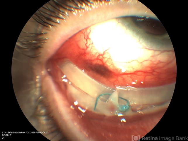 수술당시 들어간 이물질이나, 봉합사, 공막 돌륭술시 삽입하는 삽입물, 누름 조각, 실리콘 등이