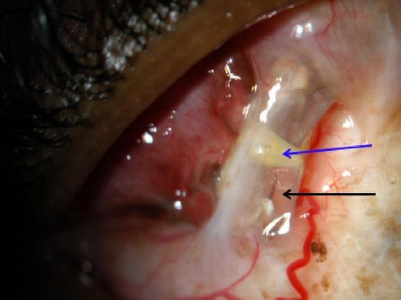 이식된 결막편이 이식 불량 시 염증 발생의 위험이 있습니다.