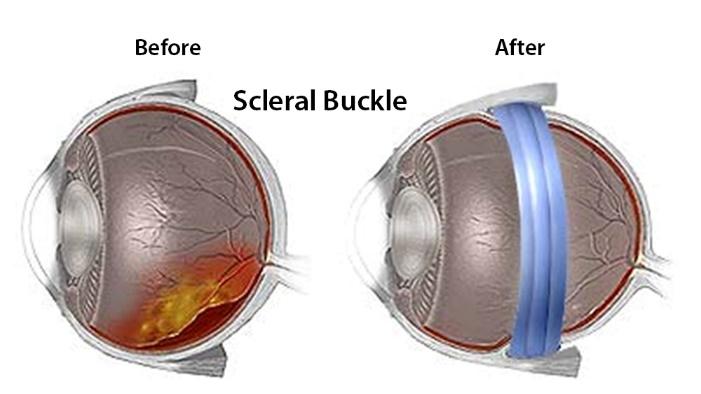 공막돌륭술은 안구 외부에서 부터 안구의 모양을 변형시켜 안구와 신경이 달라 붙게 해주는 방법입니다.