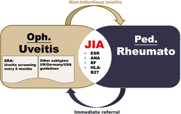 반대로 안과적으로도 포도막염이 소아에서 관찰되는 경우, JIA 감별을 위해 소아과로 보내야합니다.