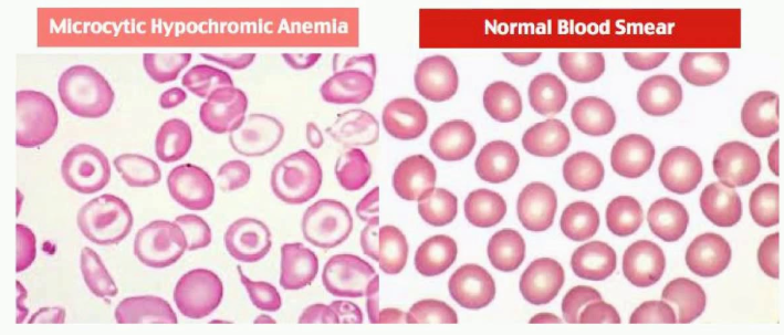 MCV↓, MCH↓등의 수치가 변화가 보이므로, 이를 통해서 의심합니다.