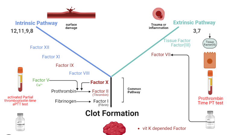 aPTT (Activated Partial Thromboplastin Time) 역시 2차 지혈 경로로, 내인성 & 공통 경로를, 의미하는 것으로, Factor 12, 11, 9, 8, 10, 5, 2, 1 관련 이 있습니다.