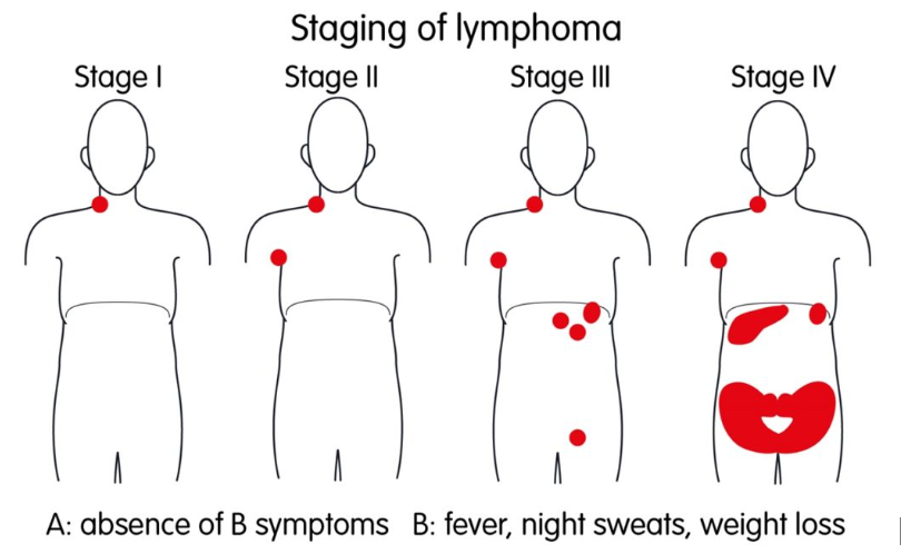 호즈킨 림프종의 병기는 Ann Arbor 분류를 사용합니다.