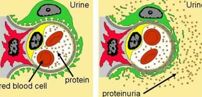 이와같은 일차적으로 사구체의 손상이 발생하는 질환으로 인한것입니다