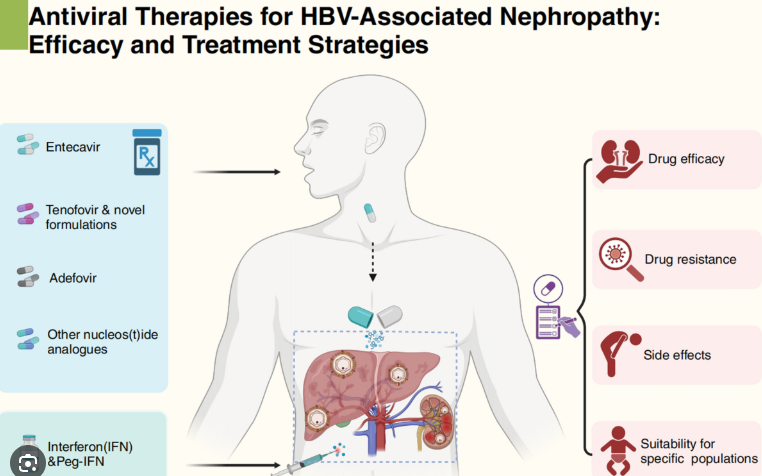 치료 방향은 간염 치료와 병행하며 신증후군 합병증(부종·단백뇨)에 대한 대증치료를 시행합니다3