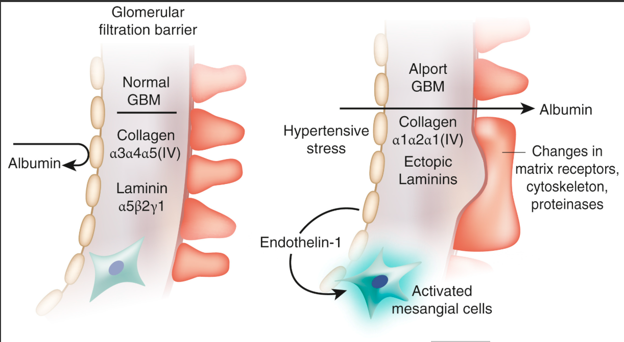 제 IV형 콜라겐은 사구체 기저막(GBM)과 같은 basal lamina 구성에 중요한 단백질 인데,,
