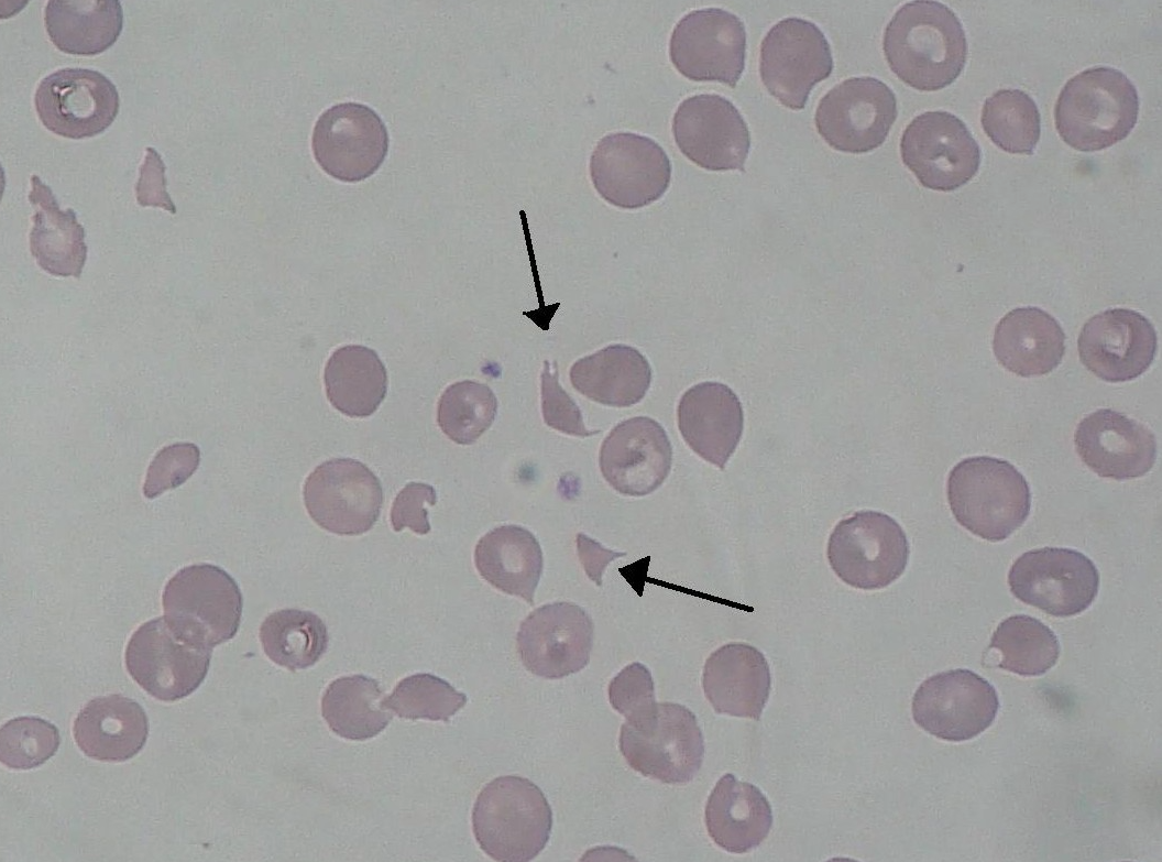 용혈성 빈혈 (MAHA)는 말초혈액도말(PBS)에서 schistocyte(분절 적혈구)를 확인하고
