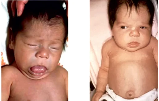 선천갑상샘저하증은 특징적인 임상 양상, 외형, 발달 지연을 보이기 때문에,