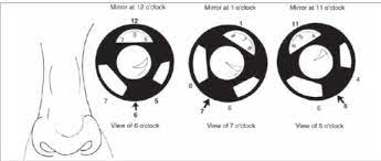 즉, 12시 방향의 전방각을 보기위해서는 6시에 거울을 위치하고 6시 방향의 거울을 현미경으로 관찰하는데,