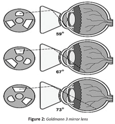 가장 대표적인 렌즈가 바로 골드만 전방각경과 Zeiss 4 mirror 전방각경입니다.