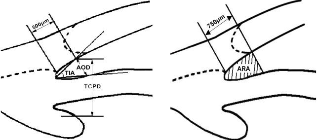 Trabecular-iris angle (TIA) 라는 것은 AOD 500을 측정하기위한 지점과 홍채가 이루는 각도를 의미합니다.