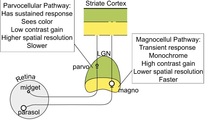 P cell : Parvocellular neuron cell, Parvocellular pathway