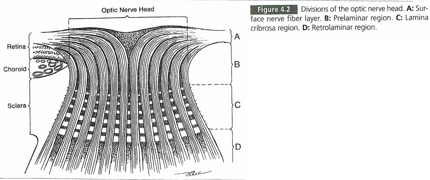 이부분에는 사상판을 빠져나온 시신경섬유들이 주행하는 곳으로, 시신경 섬유들 주위에