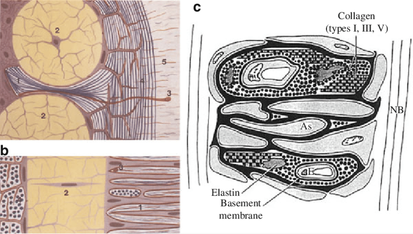이부분에는 직경 25~250um의 세공이 있고, 구멍주위에는 섬유성중격이 있고, 이를 도와주는 별아교세포(astrocyte)들이 존재합니다.