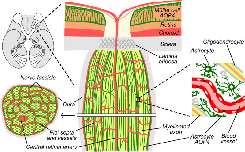 섬유성 중격과 별아교세포들은 세공을 지나가는 시신경섬유들을 기계적으로 보호하는 역할을 합니다.