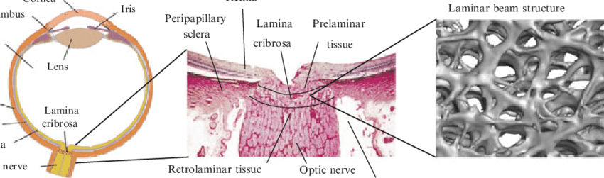 신경섬유들이 안구를 빠져나가는 곳에 있는 작은 세공(pore)가 수없이 많이 뚫려있는 판형태의 지역이 있는데,
