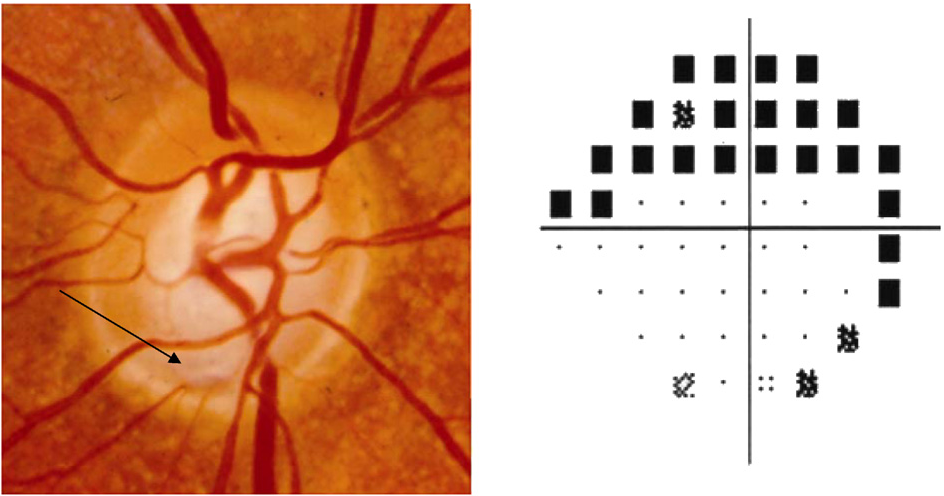 APON을 가진 녹내장환자의 96%에서 시야 중심 5도내의 짙은 시야 결손이 동반되며,