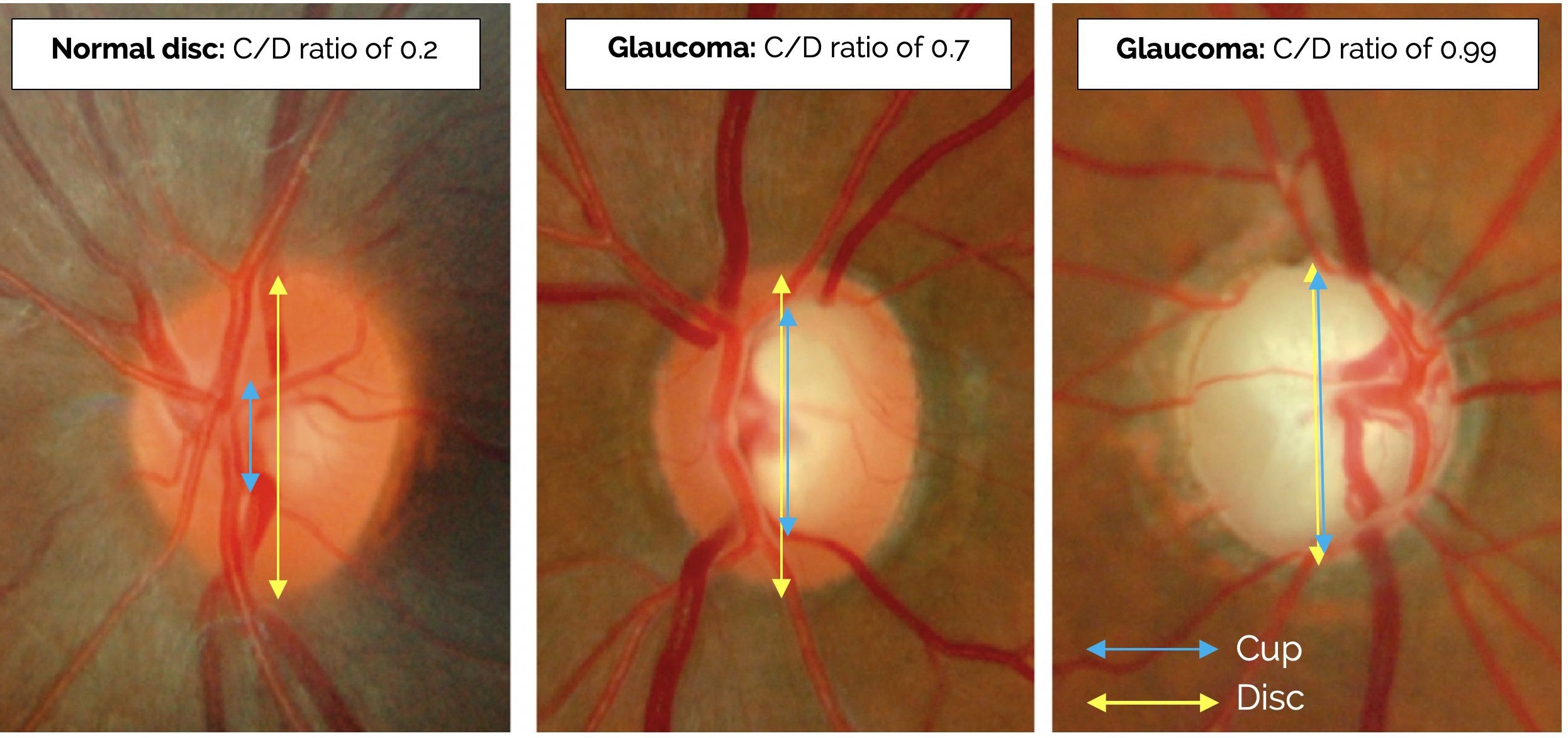 또한 시신경유두 중 녹내장을 의심해야하는 소견은 다음과 같습니다.