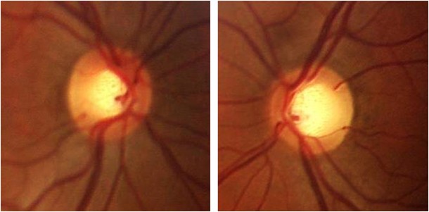 반면, 녹내장 이외의 원인에 의한 시신경유두의 비대칭은 다음과 같습니다.