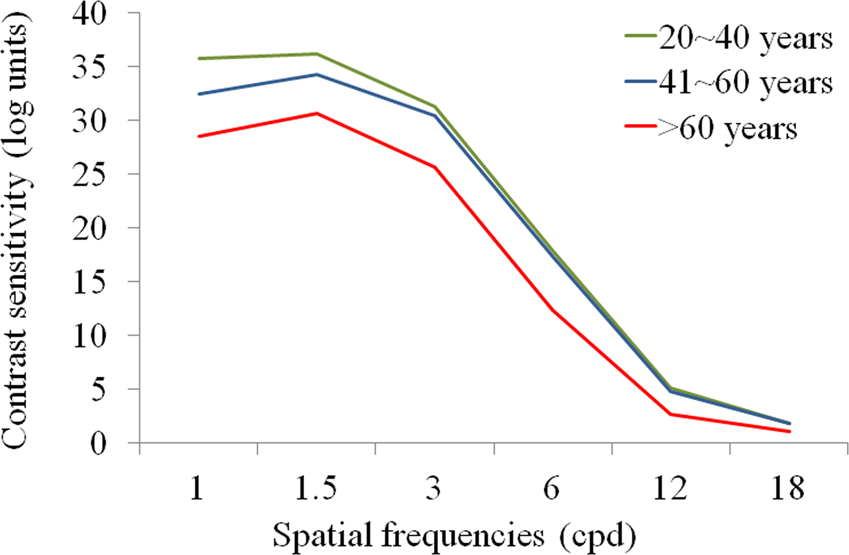 환자의 나이가 많을수록 시야의 감도가 떨어집니다.