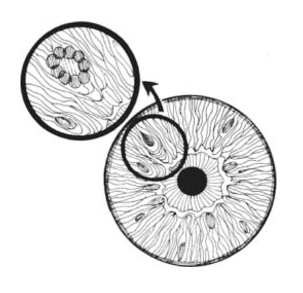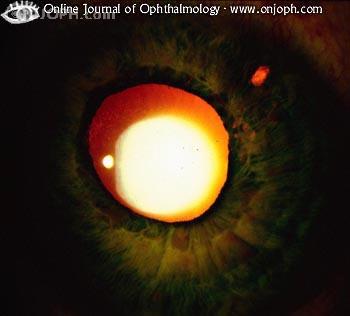 이때 투과조영법(transillumination)이라하여 빛을 동공내부로 쏴줌으로써,