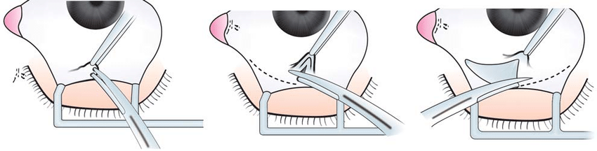 결막 원개 기반 결막편의 경우, 결막 윤부에서부터 박리해 나가면서 결막편을 만드는 것이기 때문에, 결막하 조직들의 노출이 쉽고 조작이 편리하기에, 결막이 찢어지는 경우는 드뭅니다.,