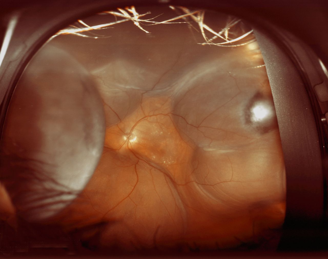 유리체강내에 방수가 점점 축적되면서, 후방양압(Posterior Positve Pressure)에 의해